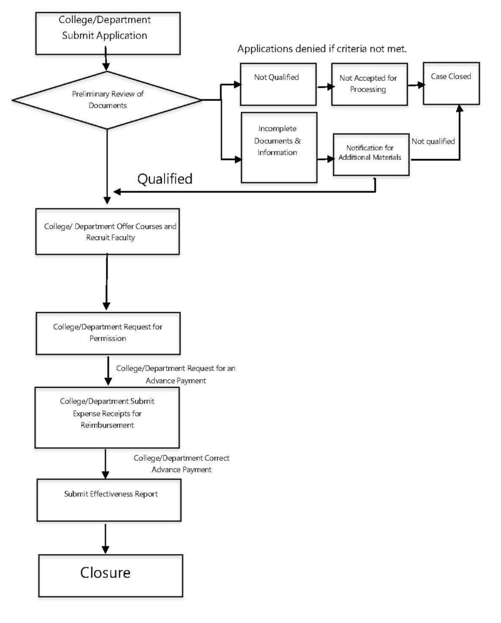 To align with the compact department, college, and university-level course review schedules of NYCU, the college/department is suggested to prepare the DVP application form, including the bio, significant teaching achievements/awards, brief course, and expense plan to apply for this DVP program. If the courses did not meet the criteria of "a complete semester-long course," "physical teaching at NYCU," and "suitable for nearly all first-year students", the subsidies will not be granted.